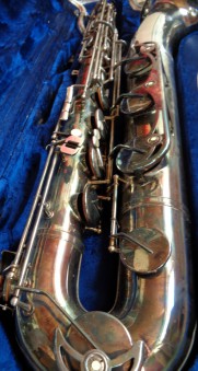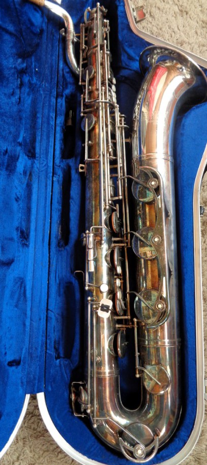 Guenot Saxophone stammen aus den 30 bis 50er Jahren, dieses Bariton geht von Tief B bis Hoch F.