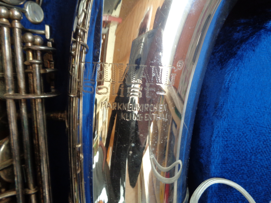 das Sax hat die Herstellernummer 7601 und ist eine versilberte Ausführung, wobei die Versilberung angelaufen ist, der Becher S Bogen wurden schon poliert.